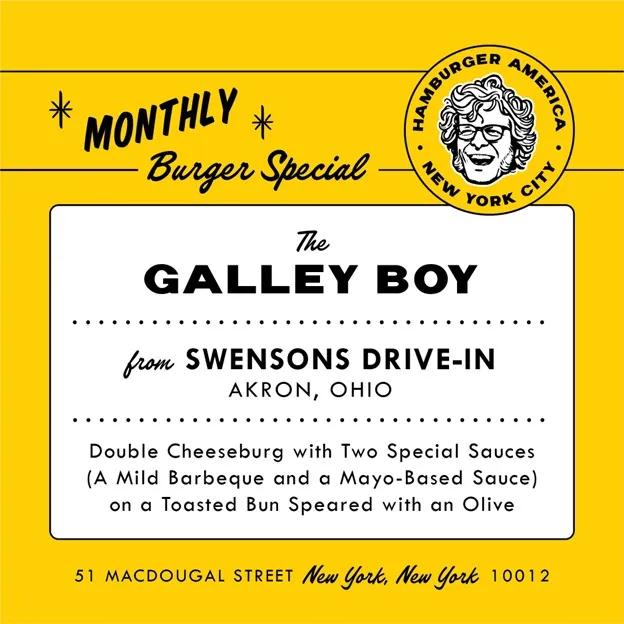 Swensons' Galley Boy featured as monthly burger special at acclaimed Hamburger America in New York City